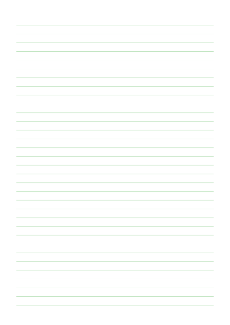 College rule is the most widely used line spacing worldwide: 8 mm between lines, fitting about 32 lines on a standard A4 sheet. It works for the majority of adult handwriting sizes and is the default in most school notebooks, legal pads, and office notepads. If you only print one style, this is it.